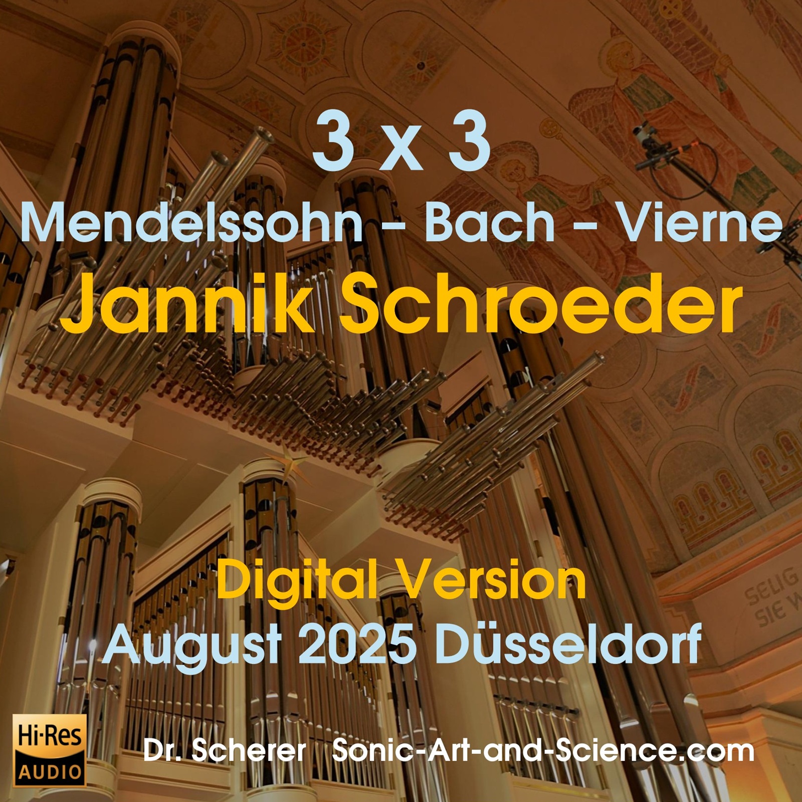 Jannik Schroeder, Kantor und Organist der Auferstehungskirche Düsseldorf Oberkassel, spielt ein spannendes Orgelkonzert. Drei Werke mit der Ordnungsnummer drei aus unterschiedlichen Jahrhunderten, 3 x 3 also, liefern ein buntes Spektrum an herrlicher Musik, gespielt an der großen EUROPA-ORGEL „Felix Mendelssohn“, gebaut von W. Sauer.