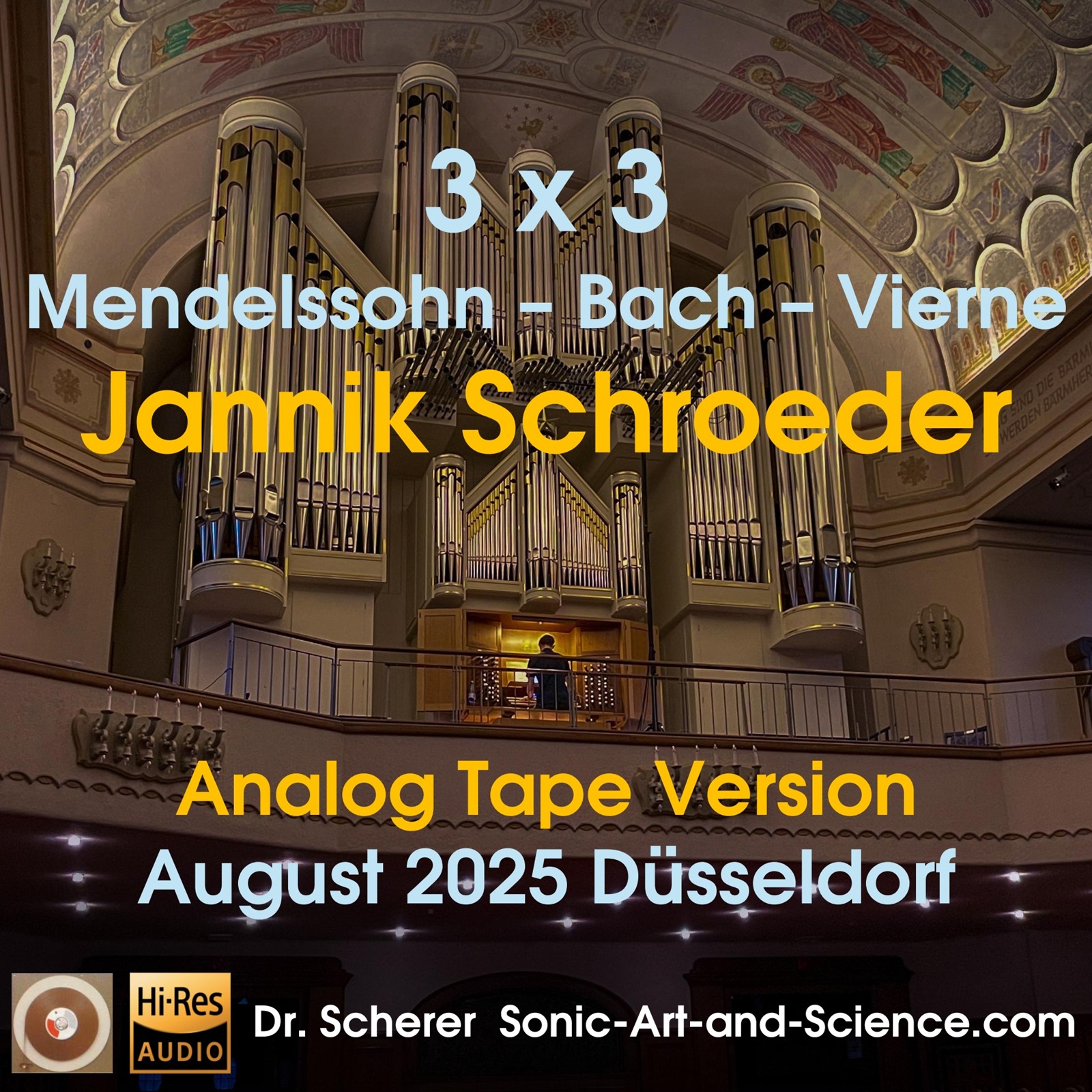 Jannik Schroeder, Kantor und Organist der Auferstehungskirche Düsseldorf Oberkassel, spielt ein spannendes Orgelkonzert. Drei Werke mit der Ordnungsnummer drei aus unterschiedlichen Jahrhunderten, 3 x 3 also, liefern ein buntes Spektrum an herrlicher Musik, gespielt an der großen EUROPA-ORGEL „Felix Mendelssohn“, gebaut von W. Sauer.